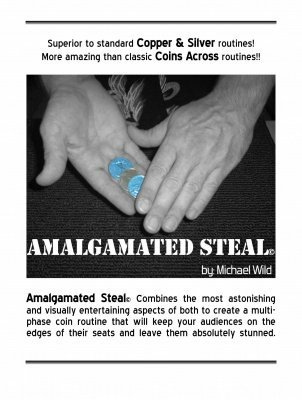 This effect is superior to standard Copper & Silver routines. It is also more amazing than classic Coins Across routines. Amalgamated Steal combines the most astonishing and visually entertaining aspects of both to create a multi-phase coin routine that will keep your audiences on the edges of their seats and leave them absolutely stunned.