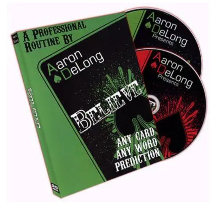 Any Card, Any Word, Prediction. The Scene: After completing an amazing set, one of the guests ask if the magician can read their minds. He admits he cannot but says he is asked that question a lot. So he has something he's learned about psychics that he'd like to share; a technique called cold reading. A card is selected and a word thought of to act as a focal point during the demonstration. Amazingly, through cold reading, the magician reveals the name of the selected card. But stranger still, even though he does not have psychic powers, he wants to show them something else. A sealed envelope is produced that is signed and dated from the day before. Inside, a card is found. It matches the free selection. But on the back of the cad, there is a word written. it is the freely thought of word! Welcome to Believe! This DVD is jammed packed with performances, explanations, variations, and a few extra goodies including a stage version of Believe; a Triple Threat Wallet handling and much more. With contributions from Paul Vigil, Jason Dean, Brandon Williams, Marty Miller, Tony Miller, Christopher Williams, and Cody J.H. Pace.