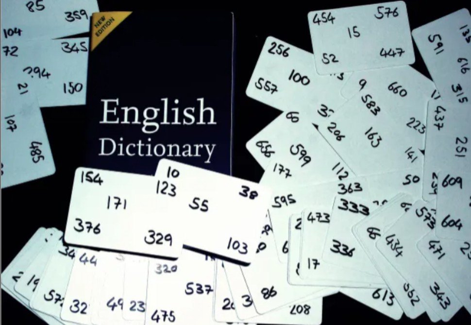 You have a big pack of cards, each card has five random numbers written on them. The spectator SHUFFLES the cards, they then select a card. You the performer NEVER see the card they choose. You then ask the spectator to THINK of one of the five numbers on that card. Then you ask them to pick up the book and to open it to the page number they are thinking of and to remember the first word on that page. You can then INSTANTLY tell them the number and the word they are thinking of.