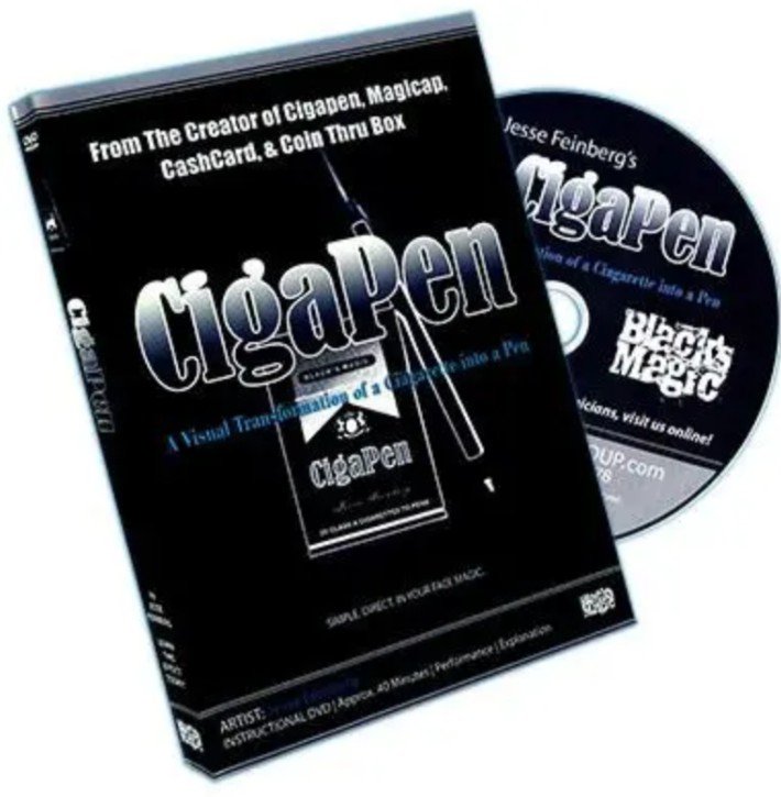 CIGAPEN – is the ultimate pocket trick to carry around with you so you can do magic anytime, anywhere, and for anyone. It is a visual transformation of a cigarette into a standard pen. Brought to you for the first time on DVD, magician extraordinaire Jesse Feinberg introduces how to make his well-known CIGAPEN gimmick from scratch. All you need is this DVD, a few minutes of your time, a couple cigarettes, and you'll be off and running with a dynamite effect to add to your repertoire. Here's what people see: You walk up to a friend, someone at a club, school, work or even a family member. You borrow a cigarette-it can even be lit-and you display it fairly in your hand. Then with nothing more than a flick of the wrist, just like real magic would look like, it instantly and visually changes to a pen! You show both sides of the pen. They're shocked. Like, WTF jus happened. You take the cap off the pen and the cigarette falls out. Check out your local magic shop for this amazing DVD.