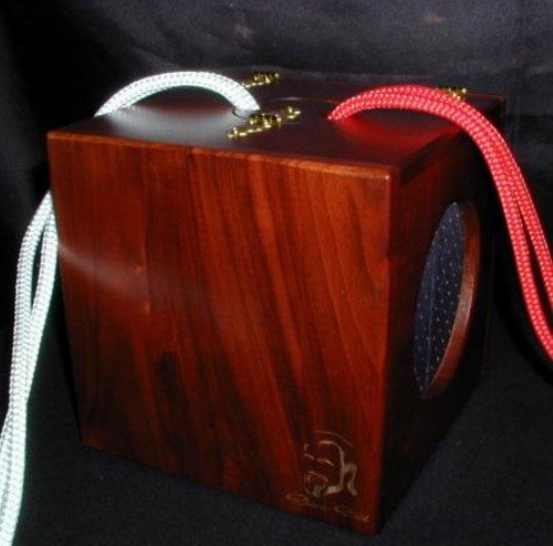 Dean performed this effect for me at the Magic Castle, and I’m glad I saw him do it, because a description does not do this trick justice. Dean brought a beautiful cherrywood box, measuring 7 inches on a side. The entire front surface of the box is a hinged door that can be opened, allowing a complete view of the interior of the box. On either side of the box are two circular openings. Each of these openings is covered with a little curtain that opens in the middle. This allows objects to be inserted into the box, but does not allow spectators to look into the box from the side. On top of the box is a small, circular trapdoor. On either side of this little door are two notches. These notches allow loops of rope to protrude from the top of the box. Now that you have a general idea of how the box looks, here’s what happens.