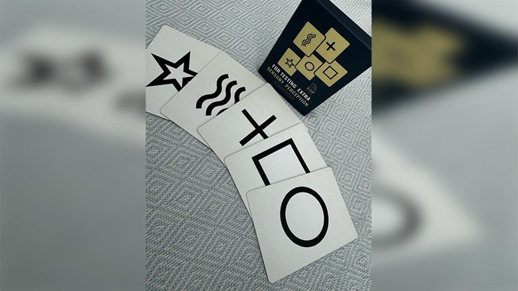 The 25 symbol cards and three tutorial / history cards are included in a customprinted, dark blue thin tuck case, and also included is Liam Montier's 'Protocol5' – a startling routine where a spectator shuffles some ESP cards, deals themin a line, and then FREELY CHOOSES five more symbols, which turn out tomatch the ones they laid out first!