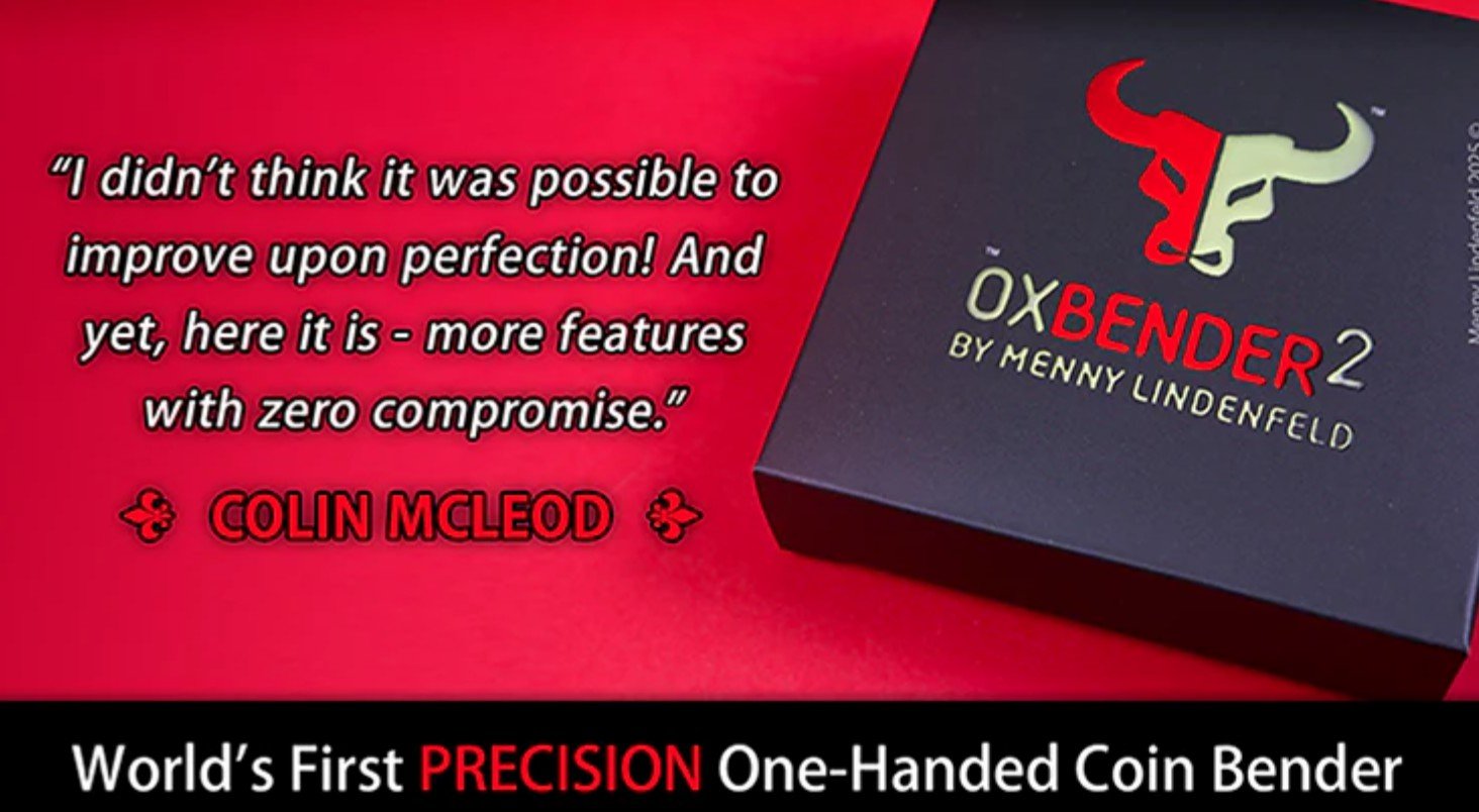 “If I told you [that you] could bend signed coins using just one hand, you wouldn’t believe it. But it’s true. When you try it the first time, you won’t believe you’re actually doing it. Menny Lindenfeld is an ingenious inventor and one of the top thinkers in the field of metal bending. His Ox Bender is a clever James Bond-like device you will love using. It’s amazing and something I will use. Recommended.”