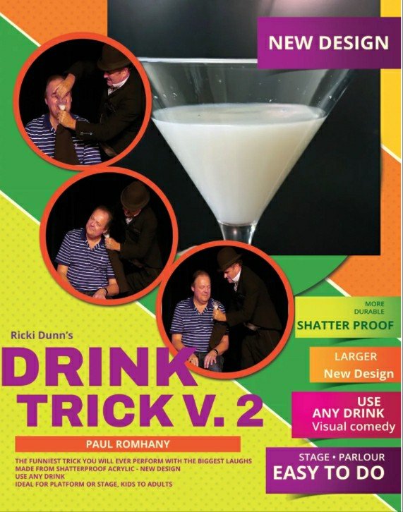 At any time in the show the magician has a spectator sit in a chair and pours a drink (ANY drink can be used) in to a Martini glass. The spectator drinks it and then the laughs begin as the drink comes out of the spectators nose and ears. This is the perfect addition if you ever have a spectator on stage – just before you send them back to their seat you perform this ‘encore’ piece.