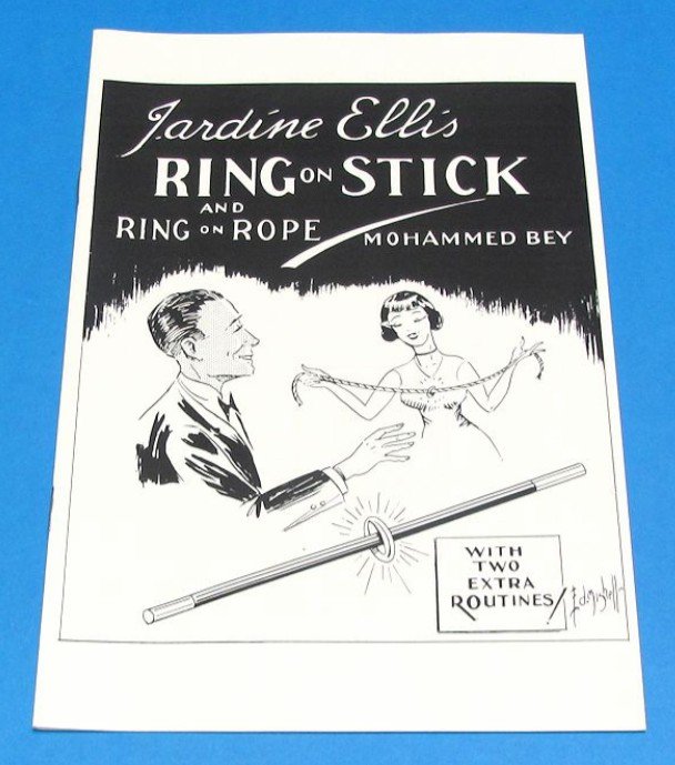The small magic ring has been called “The Ellis Ring”, “The Jardine Ring”, and “The Jardine Ellis Ring.” That’s because Jardine Ellis invented the ring which can be placed on a wand, pencil or rope, while the spectator holds the ends. This book will teach you many new routines with a good old prop.