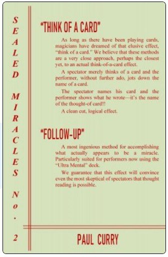 Here's an expanded and updated edition of the second and final Paul Curry manuscript in the series with a pair of powerful effects that'll give you a reputation as an outstanding magician and psychic entertainer. Both of these card miracles exhibit the brilliant methodology that you've come to expect from Paul Curry.